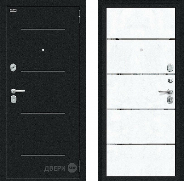 Входная металлическая Дверь Bravo Лайн Букле черное/Snow Art в Дубне 860х2050 мм