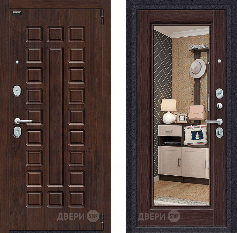 Входная металлическая Дверь Bravo Оптим Урбан с зеркалом Wenge Veralinga в Дубне 860х2050 мм