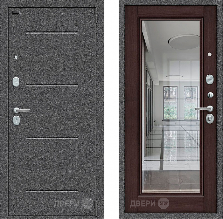Дверь Bravo Porta S-2 104/П61 с зеркалом венге в Дубне 960х2050 мм
