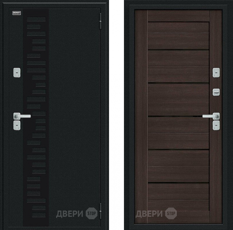 Входная металлическая Дверь Bravo Thermo Техно Декор Букле черное/Wenge Veralinga в Дубне 860х2050 мм