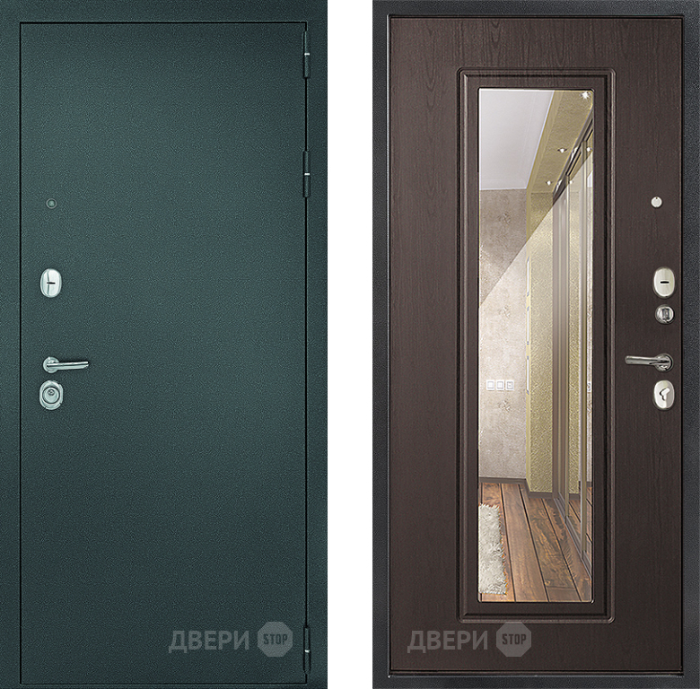 Входная металлическая Дверь Дверной Континент Рубикон Серебро Зеркало Венге в Дубне 860х2050 мм