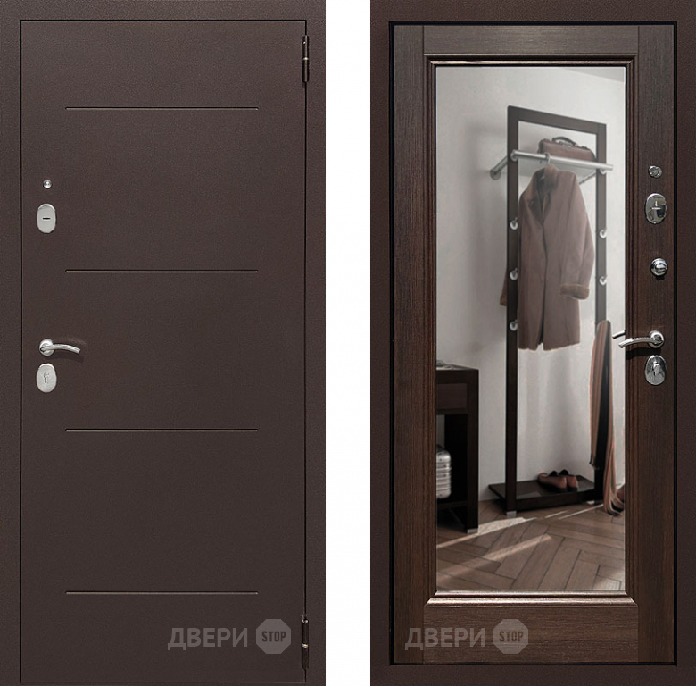Входная металлическая Дверь Престиж 100 с зеркалом Медь/Венге в Дубне 860х2050 мм