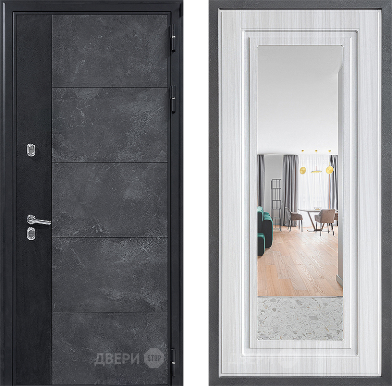 Входная Дверь Дверной континент ДК-15 Бетон ТЕРМО ФЛЗ Зеркало Сандал белый 860x2050 мм
