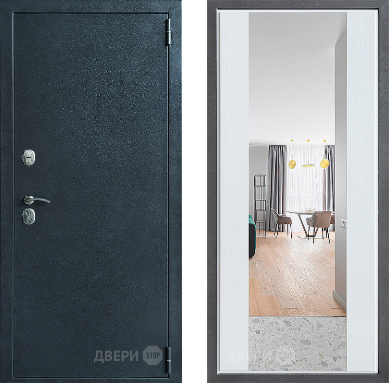 Входная Дверь Дверной континент ДК-70 Дизайн ФЛЗ-1 Зеркало Белое дерево 960x2050 мм