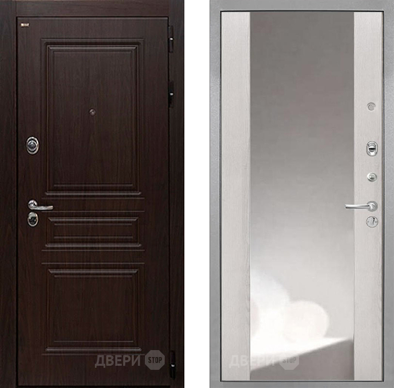 Входная Дверь Интекрон (INTECRON) Брайтон Тиковое Дерево ФЛЗ-516 Зеркало Сосна белая 860x2050 мм