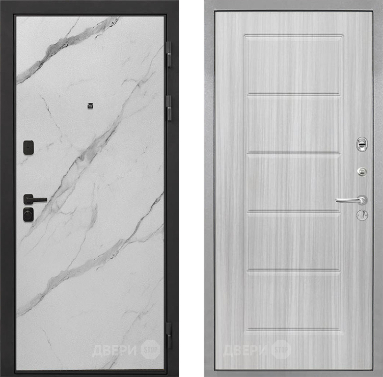 Входная Дверь Интекрон (INTECRON) Профит Black Мрамор Арктик ФЛ-39 Сандал белый 860x2050 мм