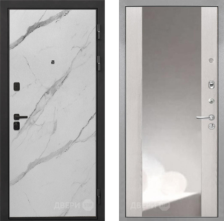 Входная Дверь Интекрон (INTECRON) Профит Black Мрамор Арктик ФЛЗ-516 Зеркало Сосна белая 860x2050 мм