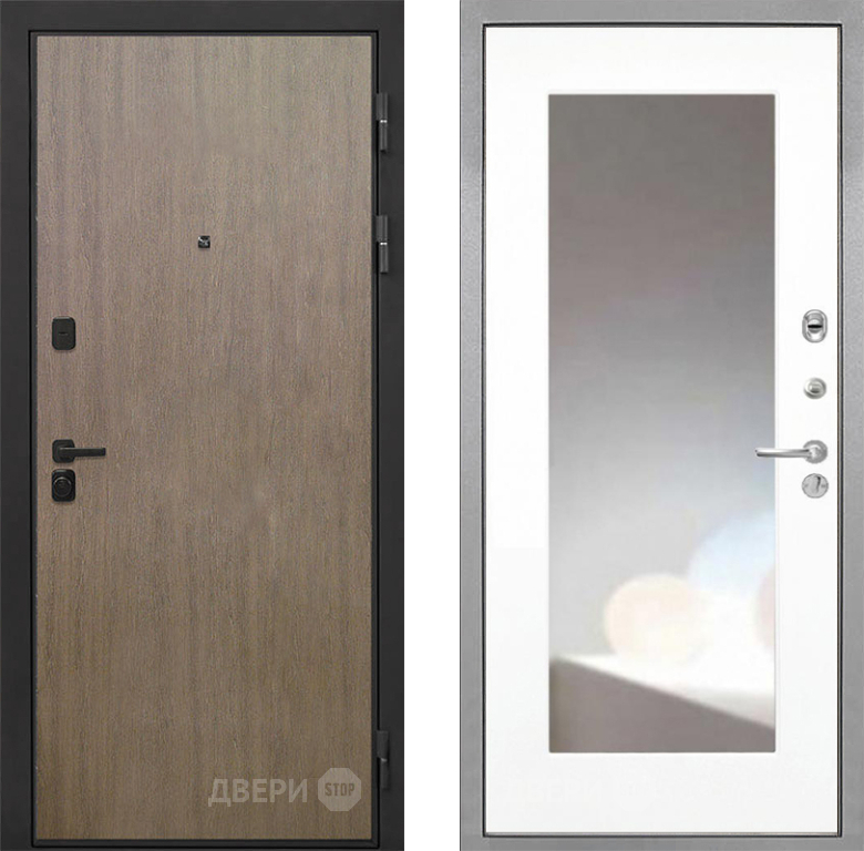 Входная Дверь Интекрон (INTECRON) Профит Black Венге Коричневый ФЛЗ-120-М Зеркало Белый матовый 860x2050 мм