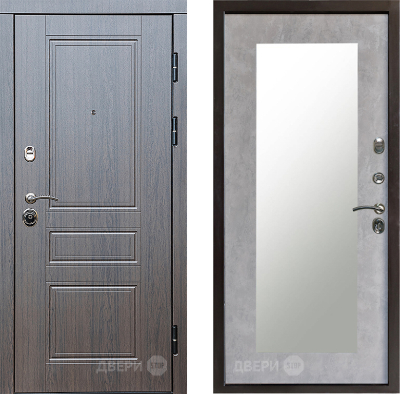 Входная Дверь Престиж Классика Венге Зеркло Пастораль Бетон светлый 860x2050 мм