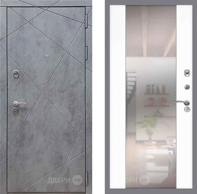 Входная Дверь Рекс (REX) 13 Бетон Темный СБ-16 Зеркало Силк Сноу 860x2050 мм