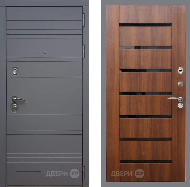 Входная Дверь Рекс (REX) 14 силк титан СБ-14 стекло черное Орех бренди 960x2050 мм