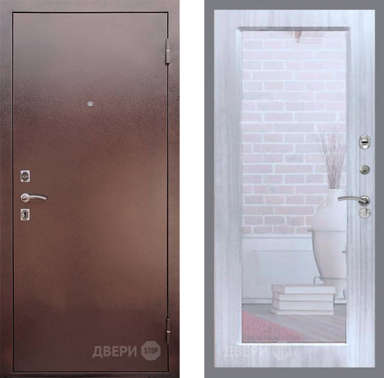 Входная Дверь Рекс (REX) 1 Зеркало Пастораль Сандал белый 860x2050 мм