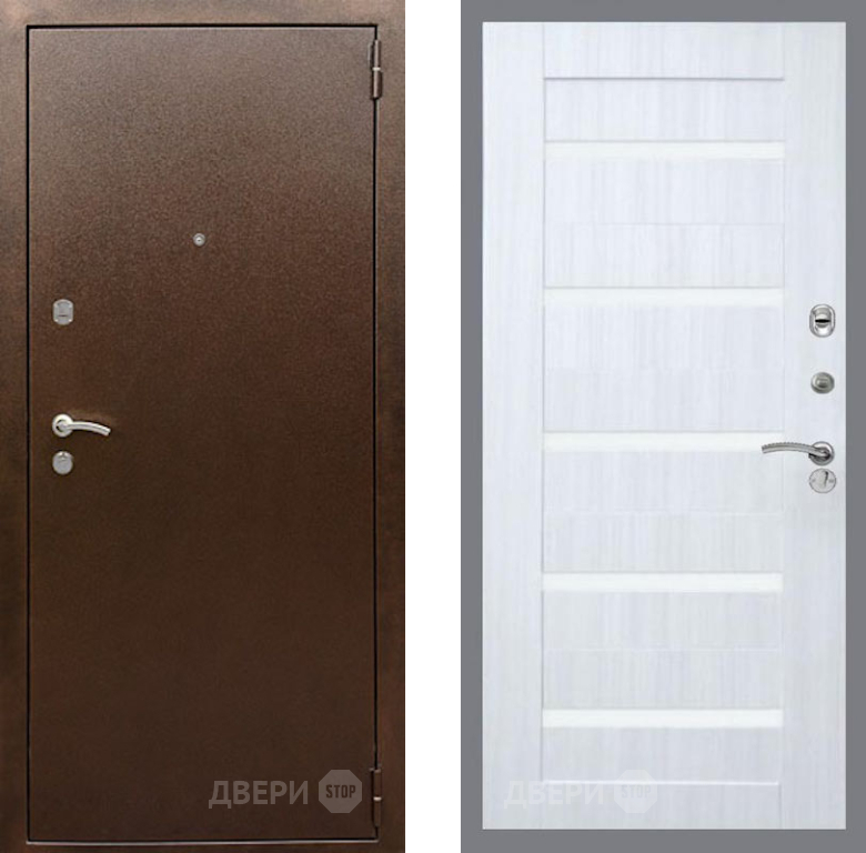 Входная Дверь Рекс (REX) 1А Медный Антик СБ-14 стекло белое Сандал белый 860x2050 мм