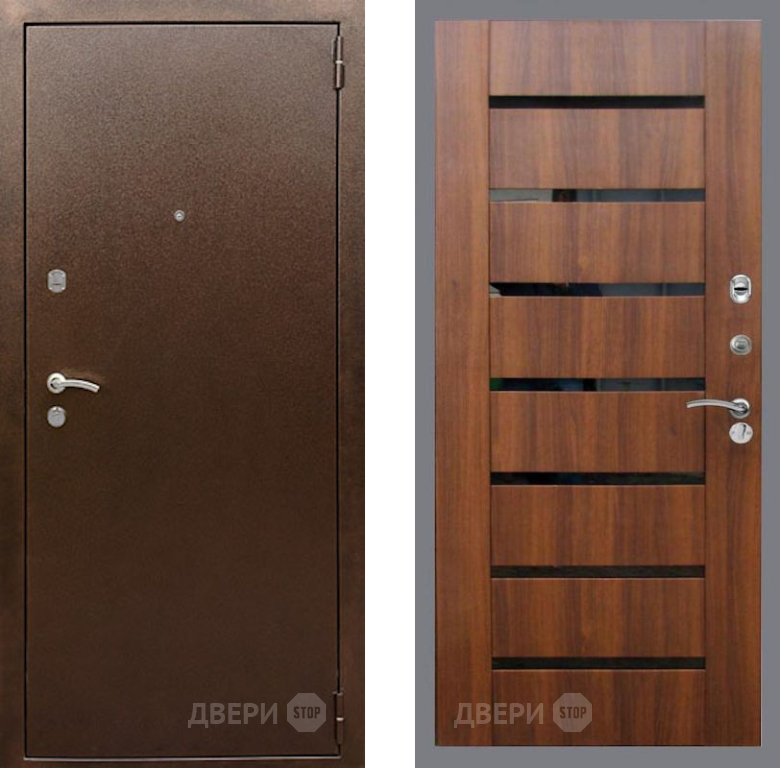 Входная Дверь Рекс (REX) 1А Медный Антик СБ-14 стекло черное Орех бренди 860x2050 мм
