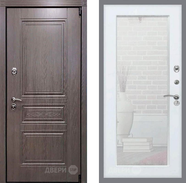 Входная Дверь Рекс (REX) Премиум-S Зеркало Пастораль Силк Сноу 860x2050 мм