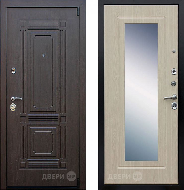 Входная металлическая Дверь АСД Викинг с зеркалом Белёный дуб в Дубне 860х2050 мм