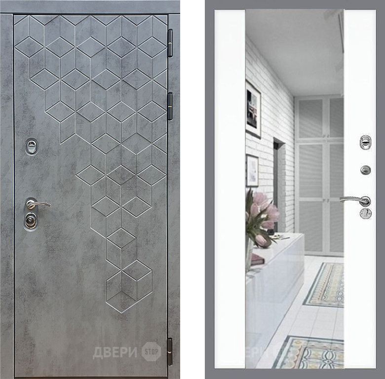 Входная Дверь Стоп БЕТОН Зеркало СБ-16 Силк Сноу 960x2050 мм