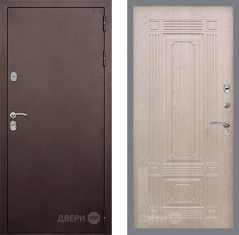 Входная Дверь Стоп КЛАССИК Медь ФЛ-2 Беленый дуб 860x2050 мм