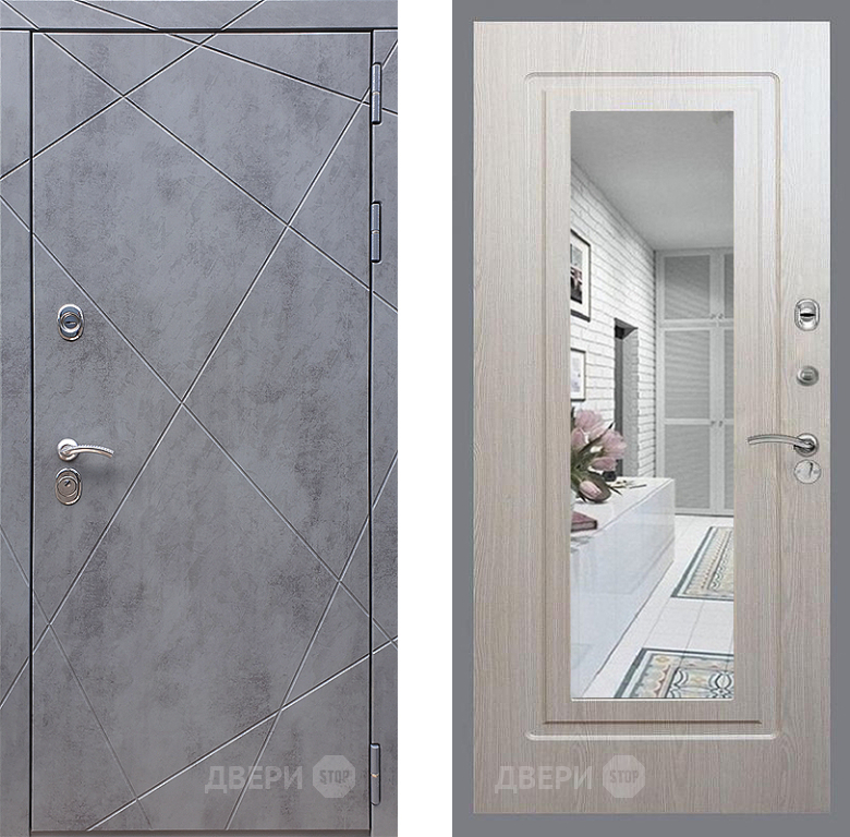 Входная Дверь Стоп Лучи Зеркало ФЛ-120 Беленый дуб 860x2050 мм