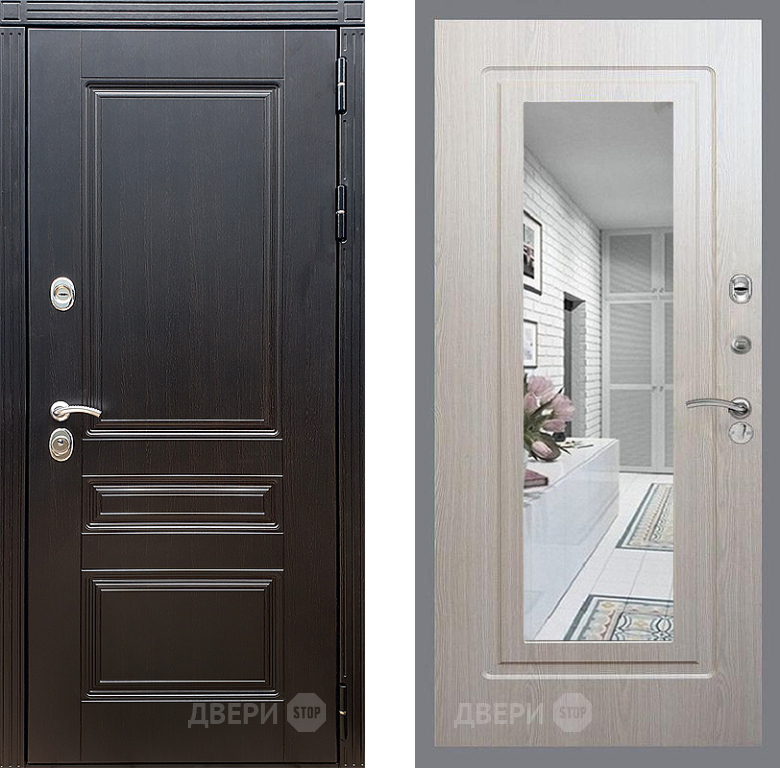 Входная Дверь Стоп МЕГАПОЛИС Зеркало ФЛ-120 Беленый дуб 960x2050 мм
