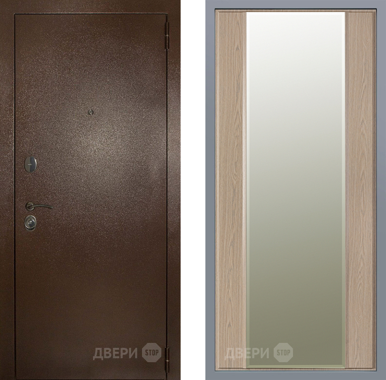Входная Дверь Заводские двери Эталон 3к антик медь Зеркало Макси Беленый дуб 960x2050 мм