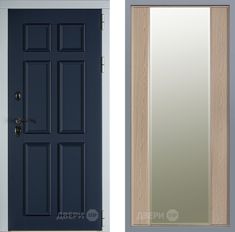 Входная Дверь Заводские двери Стокгольм Зеркало Макси Беленый дуб 860x2050 мм