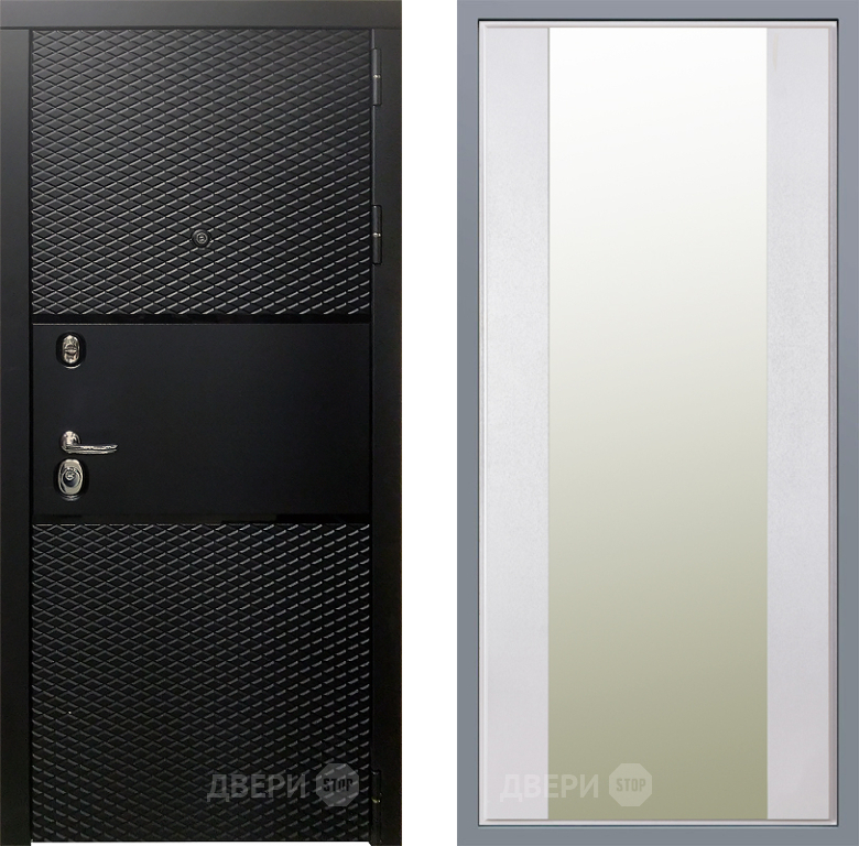 Входная Дверь Заводские двери Тефлон Зеркало Макси Белый шелк 860x2050 мм