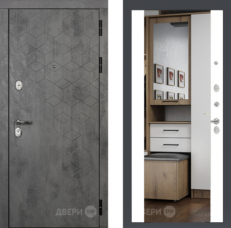 Входная металлическая Райтвер Бетон 1501 с зеркалом Белый матовый в Дубне 860х2050 мм